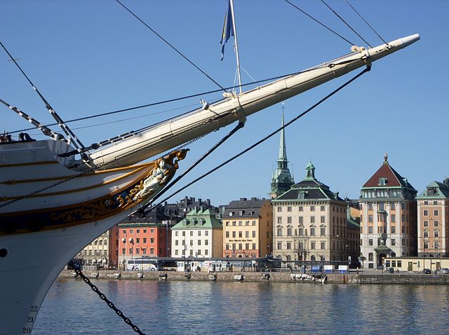 Svenska: af Chapman i Stockholm, med Skeppsbron och Gamla stan i bakgrunden