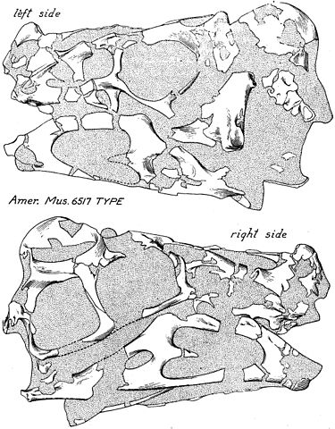 Drawing of the skull of the type specimen of Oviraptor philoceratops, AMNH 6517