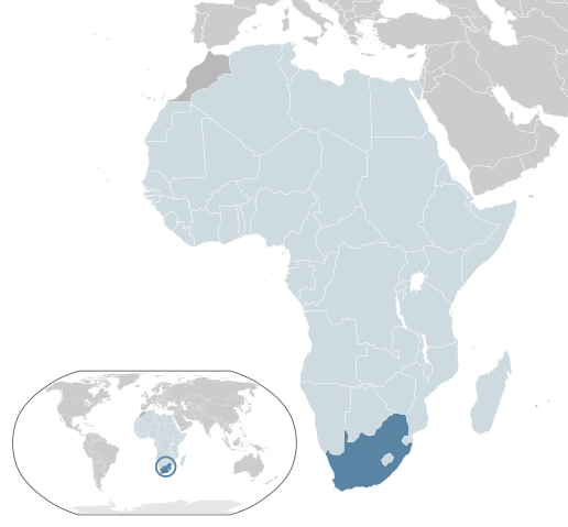 Afrikaans:  Suid-Afrika, donkerblou, teenoor die res van die  Afrika Unie, ligblou