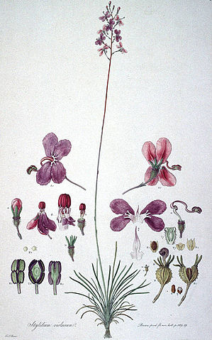 This is a scan of Plate 5 from Ferdinand Bauer's Illustrationes Florae Novae Hollandiae. The plant featured is Stylidium violaceum. |