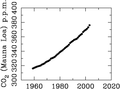 - (black) Mauna Loa Observatory, Hawaii: Keeling, C.D. and T.P. Whorf (2004) "Atmospheric CO2 records from sites in the SIO air sampling network" in Trends: A Compendium of Data on Global Change. Carbon Dioxide Information Analysis Centre, Oak Ridge National Laboratory, U.S. Department of Energy, Oak Ridge, Tenn., U.S.A.
