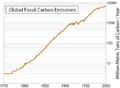 Recent global CO2 emissions, logarithmic scale.