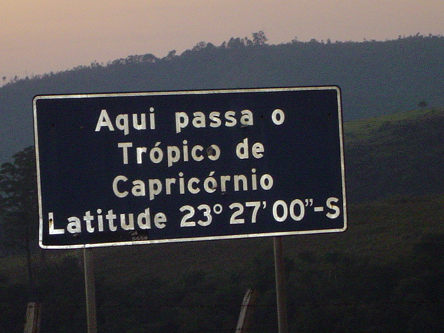 Trópico de Capricórnio. Linha imaginária que passa pelo Estado de São Paulo. Esta foto mostra o ponto de passagem no município de Santana de Parnaíba. WARNING: This was true for 1917; the Tropic is presently (Epoch 2011) at 23º 26' 16" - See  Useful constants |