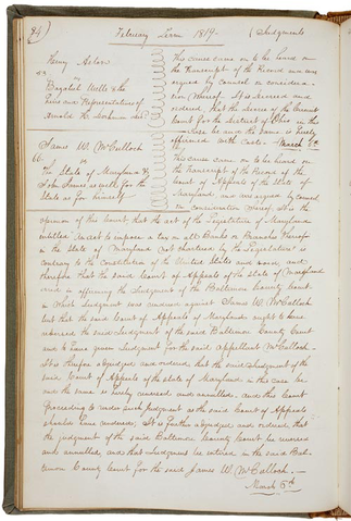 English: (McCulloch v. Maryland decision, March 6, 1819, Minutes of the Supreme Court of the United States, SOURCE: http://www.ourdocuments.gov/doc.php?doc=21 )