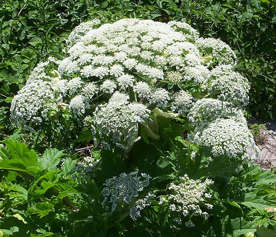 - Beschreibung:  Heracleum mantegazzianum, Hauptdolde mit Nebendolden