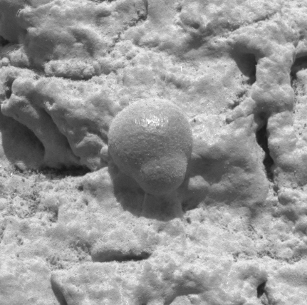 English: This image, taken by the microscopic imager on the Mars Exploration Rover Opportunity, shows a geological region of the rock outcrop at Meridiani Planum, Mars dubbed "El Capitan." Light from the top is illuminating the region. Several images, each showing a different part of this region in good focus, were merged to produce this view. The area in this image, taken on Sol 28 of the Opportunity mission, is 1.3 centimeters (half an inch) across.