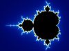 - Gesamtansicht der Mandelbrot-Menge. Startbild einer Zoom-Sequenz: Die Mandelbrot-Menge mit stufenlos eingefärbtem Außenbereich.