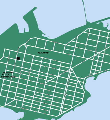 This is a  retouched picture, which means that it has been digitally altered from its original version. Modifications: redrawn. The original can be viewed here:  Conakry_us_map_1981.jpg. Modifications made by  The Man in Question.