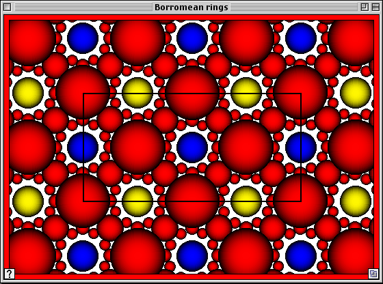 English: Partial screenshot from Weeks' SnapPea computer program. Initially made for use in describing the software in  SnapPea. For use in the article  knot theory, colors have been adjusted using GIMP (also GPL licensed software) to match  :Image:BorromeanRings.svg.  Category:Screenshots of Mac software |