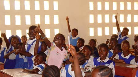 English: Second graders in a primary school after it was rebuilt after being damaged in the Sierra Leone Civil War. In Koidu Sierra Leone