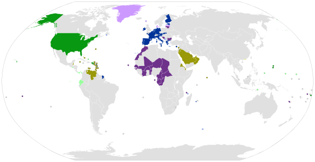 Landoj uzantaj monon konektitan al nek la usona dolaro nek la eǔro.