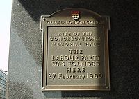 Plaque recording the location of the formation of the British Labour Party in 1900.