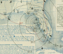 | Weather Bureau surface weather map of the hurricane moving up the west coast of Florida | |