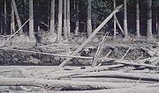 - Channelized blast zone, an intermediate zone, extended out to distances as far as 19 miles (30 km) from the volcano, an area in which the flow flattened everything in its path and was channeled to some extent by topography. In this zone, the force and direction of the blast are strikingly demonstrated by the parallel alignment of toppled large trees, broken off at the base of the trunk as if they were blades of grass mown by a scythe. This zone was also known as the "tree-down zone."