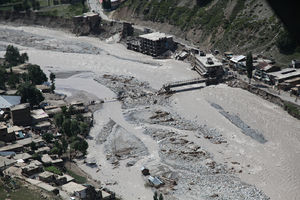 The Karakoram Highway, which connects Pakistan with China, was closed after a bridge was destroyed. The ongoing devastating floods in Pakistan will have a severe impact on an already vulnerable population, says the International Committee of the Red Cross (ICRC). In addition to all the other damages the floods have caused, floodwater has destroyed much of the health care infrastructure in the worst-affected areas, leaving inhabitants especially vulnerable to water-borne disease. In Sindh, the Indus River burst its banks near Sukkur on 8 August, submerging the village of Mor Khan Jatoi. There is also an absence of law and order, mainly in Sindh. Looters have been taking advantage of the floods by ransacking abandoned homes using boats.