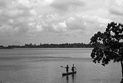 The future Abidjan, situated on the edge of the lagoon n'doupé ("the lagoon in hot water, "future "Ébrié Lagoon"), offered more space and greater opportunities for trade expansion. The wharf in Petit Bassam (now Port-Bouet) south of the town, quickly overtook in importance the wharf of Grand-Bassam, hitherto the main economic access to the colony. From 1904, when Bingerville was not yet complete, Abidjan became the main economic hub of the colony of Côte d'Ivoire and a prime channel for distributing products to the European hinterland, particularly through the Lebanese community which was increasingly important.