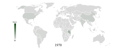 Global agricultural output from 1970 to 2008. This time covers the effects of the Green Revolution.