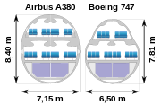 Economy class fuselage-comparison between Airbus A380 and the front-section of Boeing 747, the next-largest passenger aircraft