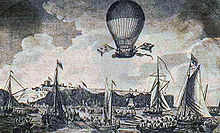 A more practical dirigible airship was described by Lieutenant Jean Baptiste Marie Meusnier in a paper entitled "Mémoire sur l’équilibre des machines aérostatiques" (Memorandum on the equilibrium of aerostatic machines) presented to the French Academy on 3 December 1783. The 16 water-colour drawings published the following year depict a 260-foot-long (79 m) streamlined envelope with internal ballonnets that could be used for regulating lift: this was attached to a long carriage that could be used as a boat if the vehicle was forced to land in water. The airship was designed to be driven by three propellers and steered with a sail-like aft rudder. In 1784 Jean-Pierre Blanchard fitted a hand-powered propeller to a balloon, the first recorded means of propulsion carried aloft. In 1785 he crossed the English Channel in a balloon equipped with flapping wings for propulsion and a bird-like tail for steering.