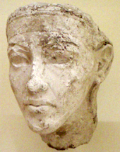 ![]() Statue of Akhenaten in the early Amarna style.  |