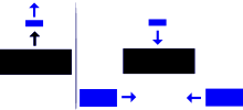 The Athenian strategy at Cyzicus. Left: Alcibiades' decoy force (blue) lures the Spartan fleet (black) out to sea. Right: Thrasybulus and Theramenes bring their squadrons in behind the Spartans to cut off their retreat towards Cyzicus, while Alcibiades turns to face the pursuing force.