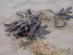 Between 100,000 and 170,000 wet tons of Macrocystis are harvested annually in California for alginate extraction and abalone feed.