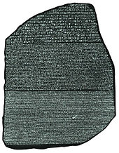 The Rosetta stone (ca 196 BC) enabled linguists to begin the process of hieroglyph decipherment.