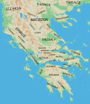 Map showing the major regions of mainland ancient Greece, and adjacent "barbarian" lands.