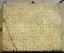 Inheritance law, part of the Law Code of Gortyn, Crete, fragment of the 11th column. Limestone, 5th century BC