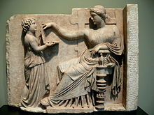 Gravestone of a woman with her slave child-attendant, c. 100 BC