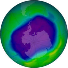 In September 2006, NASA satellite data revealed that the Antarctic ozone hole was larger than at any other time on record, 27.5 million km2 (10.6 million sq mi).