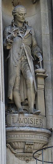 About a century after his death, a statue of Lavoisier was erected in Paris. It was later discovered that the sculptor had not actually copied Lavoisier's head for the statue, but used a spare head of the  Marquis de Condorcet, the Secretary of the Academy of Sciences during Lavoisier's last years.{{Cn|date=February 2013} Lack of money prevented alterations from being made. The statue was melted down during the Second World War and has not since been replaced. However, one of the main " lycées" (high schools) in Paris and a street in the  8th arrondissement are named after Lavoisier, and statues of him are found on the  Hôtel de Ville (photograph, left) and on the façade of the Cour Napoléon of the  Louvre.