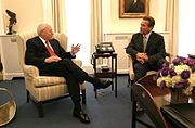 Schwarzenegger's endorsement in the Republican primary of the 2008 U.S. Presidential election was highly sought; despite being good friends with candidates Rudy Giuliani and Senator John McCain, Schwarzenegger remained neutral throughout 2007 and early 2008. Giuliani dropped out of the Presidential race on January 30, 2008, largely because of a poor showing in Florida, and endorsed McCain. Later that night, Schwarzenegger was in the audience at a Republican debate at the Ronald Reagan Presidential Library in California. The following day, he endorsed McCain, joking, "It's Rudy's fault!" (in reference to his friendships with both candidates and that he could not make up his mind). Schwarzenegger's endorsement was thought to be a boost for Senator McCain's campaign; both spoke about their concerns for the environment and economy.