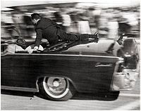 ![]() President Kennedy with his wife, Jacqueline, and Governor of Texas John Connally in the presidential limousine, minutes before the President's assassination.  |