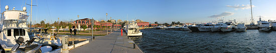 The airport is served by the metro, the suburban rail, buses to Piraeus port, Athens' city centre and it suburbs, and also taxis. Eleftherios Venizelos International Airport accommodates 65 landings and take-offs per hour, with its 24 passenger boarding bridges, 144 check-in counters and broader 150,000 m2 (1,614,587 sq ft) main terminal; and a commercial area of 7,000 m2 (75,347 sq ft) which includes cafes, duty-free shops, and a small museum.