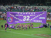 Before the start of each AFL match, players run through a banner constructed by supporters.