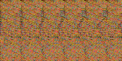 The fine-tuned gradient requires a pattern image more complex than standard repeating-pattern wallpaper, so typically a pattern consisting of repeated random dots is used. When the autostereogram is viewed with proper viewing technique, a hidden 3D scene emerges. Autostereograms of this form are known as Random Dot Autostereograms.