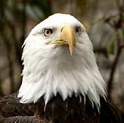 The Bald Eagle (Haliaeetus leucocephalus) is a bird of prey found in North America that is most recognizable as the national bird and symbol of the United States of America. This sea eagle has two known sub-species and forms a species pair with the White-tailed Eagle. Its range includes most of Canada and Alaska, all of the contiguous United States and northern Mexico. It is found near large bodies of open water with an abundant food supply and old-growth trees for nesting.
