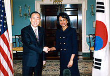 Ban Ki-moon with U.S. Secretary of State Condoleezza Rice in January 2006.