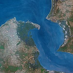 Banjul (formerly Bathurst), officially the City of Banjul, is the capital of The Gambia, and is in the division of the same name. The population of the city proper is only 34,828, with the Greater Banjul Area, which includes the City of Banjul and the Kanifing Municipal Council, at a population of 357,238 (2003 census). Banjul is on St Mary's Island (Banjul Island), where the Gambia River enters the Atlantic Ocean. The island is connected to the mainland — by passenger and vehicle ferries to the north and by bridges to the south.