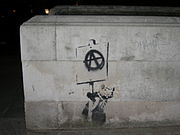 Banksy is a quasi-anonymous English graffiti artist. He is believed to be a native of Yate, South Gloucestershire, near Bristol and to have been born in 1974, but there is substantial public uncertainty about his identity and personal and biographical details. According to Tristan Manco, Banksy "was born in 1974 and raised in Bristol, England. The son of a photocopier technician, he trained as a butcher but became involved in graffiti during the great Bristol aerosol boom of the late 1980s." His artworks are often satirical pieces of art on topics such as politics, culture, and ethics. His street art, which combines graffiti writing with a distinctive stencilling technique, is similar to Blek le Rat, who began to work with stencils in 1981 in Paris and members of the anarcho-punk band Crass who maintained a graffiti stencil campaign on the London Tube System in the late 1970s and early 1980s. His art has appeared in cities around the world. Banksy's work was born out of the Bristol underground scene which involved collaborations between artists and musicians.