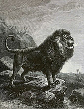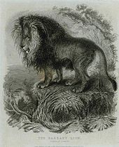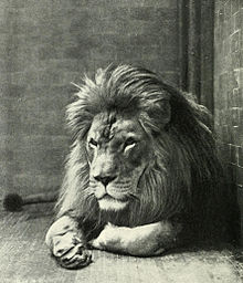 | A Barbary lion from Algeria, photographed by Sir Alfred Edward Pease around 1893 | |
