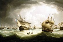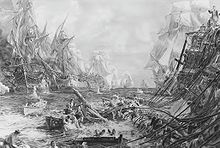![]() The Battle of Trafalgar, as seen from the mizzen starboard shrouds of the Victory by J. M. W. Turner (oil on canvas, 1806 to 1808)  |