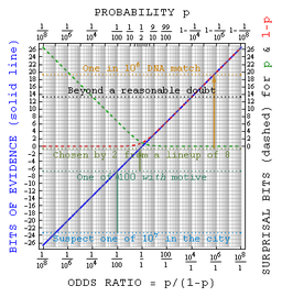 A logarithmic approach which replaces multiplication with addition and reduces the range of the numbers involved might be easier for a jury to handle. This approach, developed by Alan Turing during World War II and later promoted by I. J. Good and E. T. Jaynes among others, amounts to the use of information entropy.