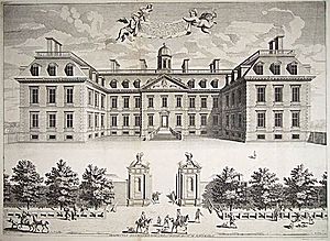 Either side of the Saloon are two smaller drawing rooms (F, K), which would originally have served as private withdrawing rooms from the more public activities which would have taken place in the Marble Hall and Saloon. One of these withdrawing rooms was transformed into the principal or state bedroom during the occupancy of Lord Tyrconnel in an attempt to create a more fashionable suite of Baroque state rooms. Ironically, when a queen ( Adelaide, widow of William IV) did next stay at Belton in 1840, the state bedroom was put back in its original location in the chamber above the Saloon now known as the Queen's Room.