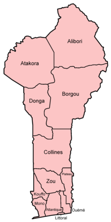 Benin is divided into twelve departments (French: départements) which, in turn, are subdivided into 77 communes. In 1999, the previous six departments were each split into two halves, forming the current twelve. The six new departments have not yet been assigned official capitals.