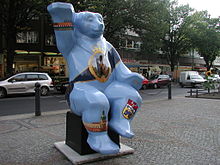 The artistically painted Buddy Bear is a popular figure seen around downtown Berlin (here in front of Charlottenburg city hall)