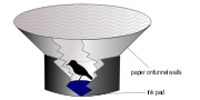 Studies of orientation behaviour have been traditionally carried out using variants of a setup known as the Emlen funnel which consists of a circular cage with the top covered by glass or wire-screen so that either the sky is visible or the setup is placed in a planetarium or with other controls on environmental cues. The orientation behaviour of the bird inside the cage is studied quantitatively using the distribution of marks that the bird leaves on the walls of the cage. Other approaches used in pigeon homing studies make use of the direction in which the bird vanishes on the horizon.