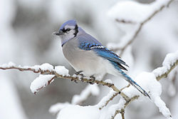| In Algonquin Provincial Park (Canada), the large subspecies Cyanocitta cristata bromia occurs. | |