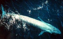 The flippers are 3–4 metres (9.8–13 ft) long. The upper sides are grey with a thin white border; the lower sides are white. The head and tail fluke are generally uniformly grey. The whale's upper parts, and sometimes the flippers, are usually mottled. The degree of mottling varies substantially from individual to individual. Some may have a uniform slate-grey colour, but others demonstrate a considerable variation of dark blues, greys and blacks, all tightly mottled.